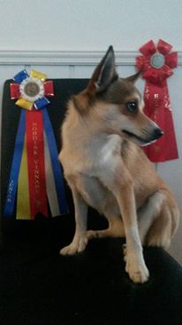 Gimli Av Revehjerte skulle på sin aller første utstilling på nkk Kristiansand . Var jo veldig spent siden det kanskje ikke var det smarteste stedet å starte med både en enorm folkemengde og støy inne i hallen, vi møtte opp tidlig så han skulle bli litt husvarm. Endelig var det hans tur som førstemann i ringen og jeg ante ikke hvordan dette skulle gå.