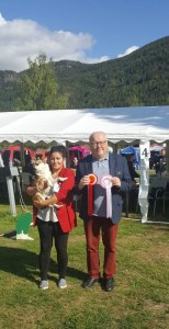 Med mye jobbing for å holde kontakten og fokuset vekk fra alt annet som skjedde rundt oss fikk jeg vist han så godt jeg kunne . Gutten fikk HP og ble BIR valp.